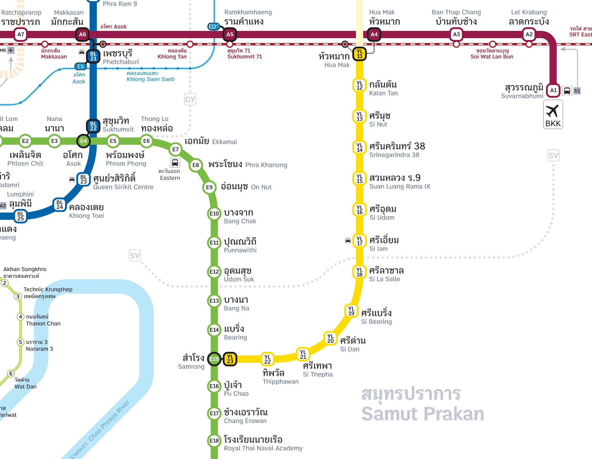 Bangkok MRT Yellow Line SkyTrain: Map, Timetable, Fare