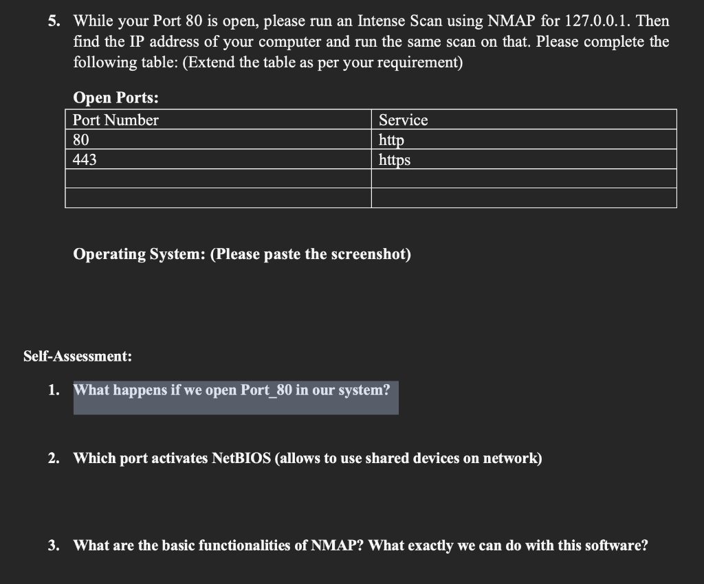 Nmap Scan Port 80 And 443 – In case your router blocks the random port used by Skype to receive incoming connections, you must manually forward ports 80 and 443, allowing Skype to connect to other clients via TCP. . you communicate with the Web server on port 80 if you use HTTP, or port 443 if you use HTTPS. Mail servers communicate with one another on port 25. Specialized software such as video conferencing .